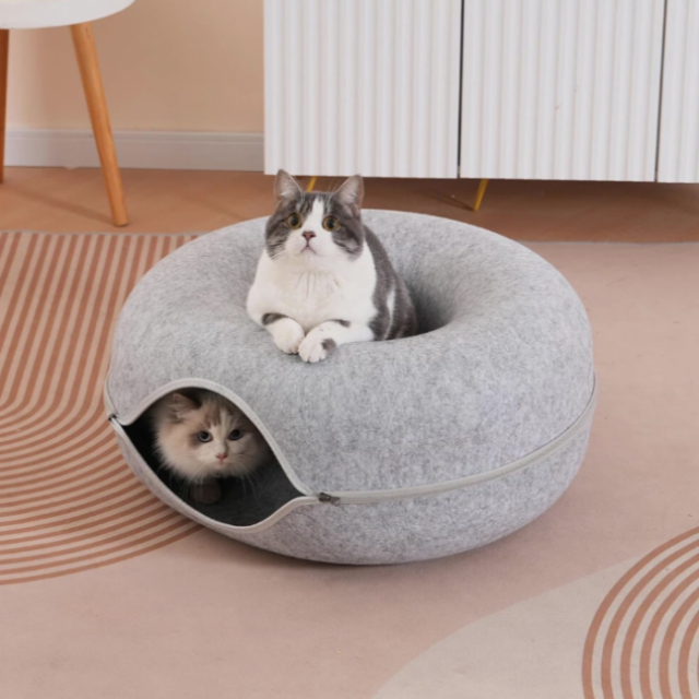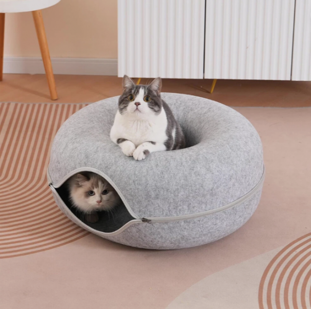 Unique and Stylish: Our This cat cave donut bed is a unique and modern take on the traditional cat tunnels and cat beds, the cat cave bed is stylish and sturdy, and can be incorporated into any of your home décor styles, It is perfect gift for beloved cats and cat lovers.